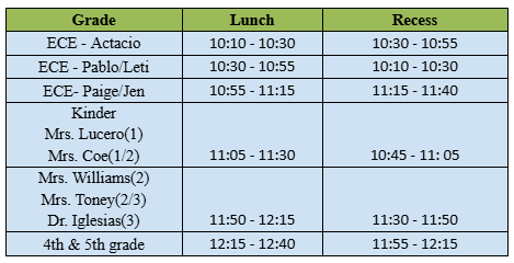 Horario Escolar– 8:00 a. m. a 2:45 p. m.