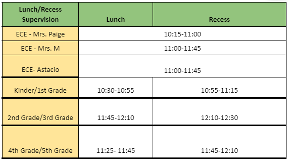 School Hours– 8:00 a.m. to 2:45 p.m.